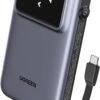 • Especificaciones: Capacidad de 10000 mAh, carga rápida de 30W, cable USB-C integrado y pantalla LED interactiva.
